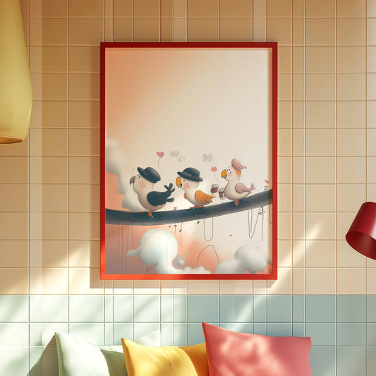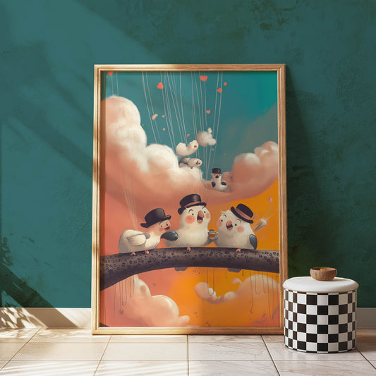 The theme was designed to spark imagination and encourage kids to think outside the box. With its playful mix of vibrant colors and surreal scenarios, this collection invites children to dream up worlds where birds are the ultimate business moguls. It’s the perfect blend of humor, creativity, and wonder—crafted to inspire young minds while adding a splash of personality to your walls.