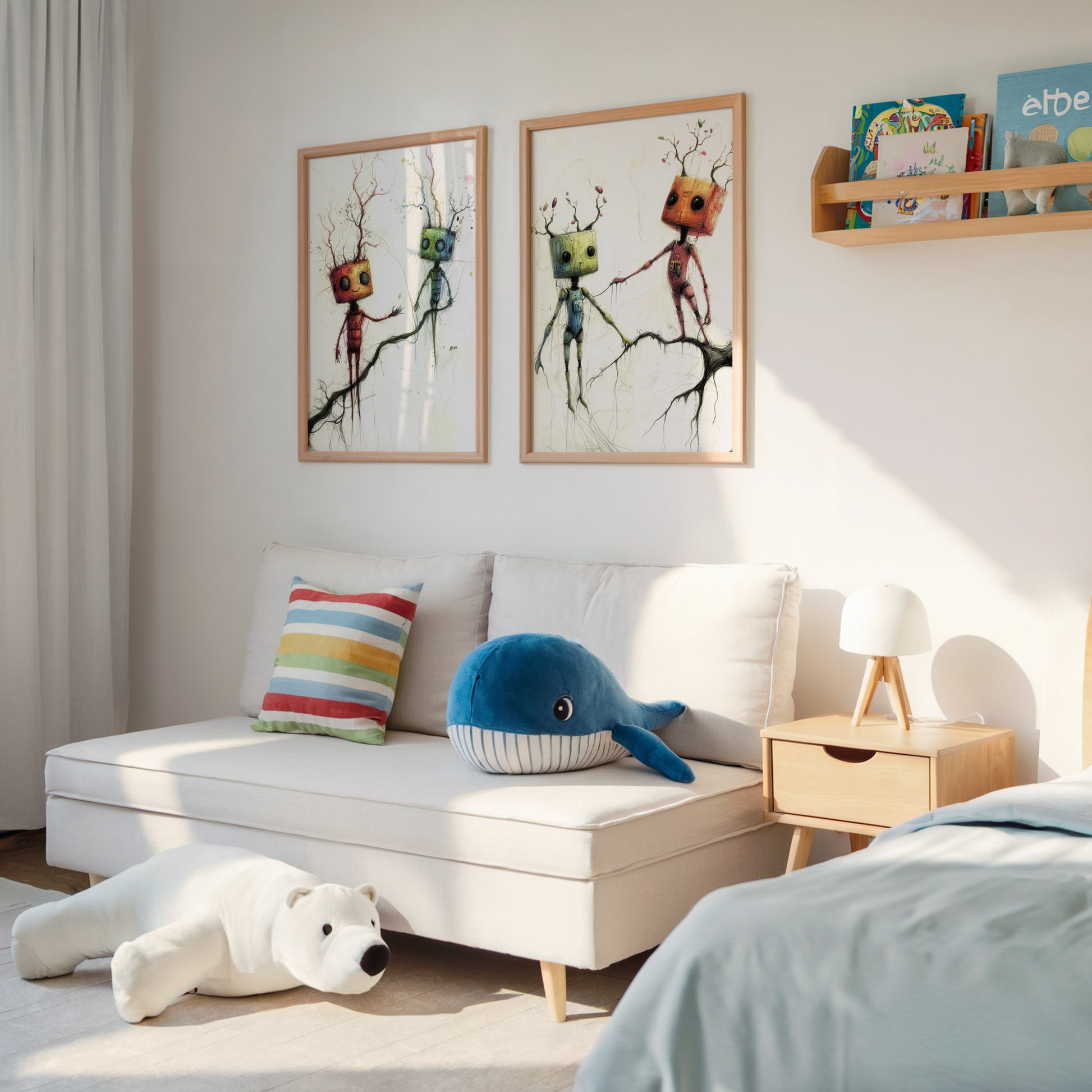 Our goal is to create art that not only enhances the look of a room but also sparks creativity and imaginative thinking in children. While many parents choose artwork based on their own preferences, we focus on designing pieces that children will love to gaze at, explore, and connect with. Our art tells unique stories and is crafted to engage and inspire, making art an exciting part of a child's environment.
