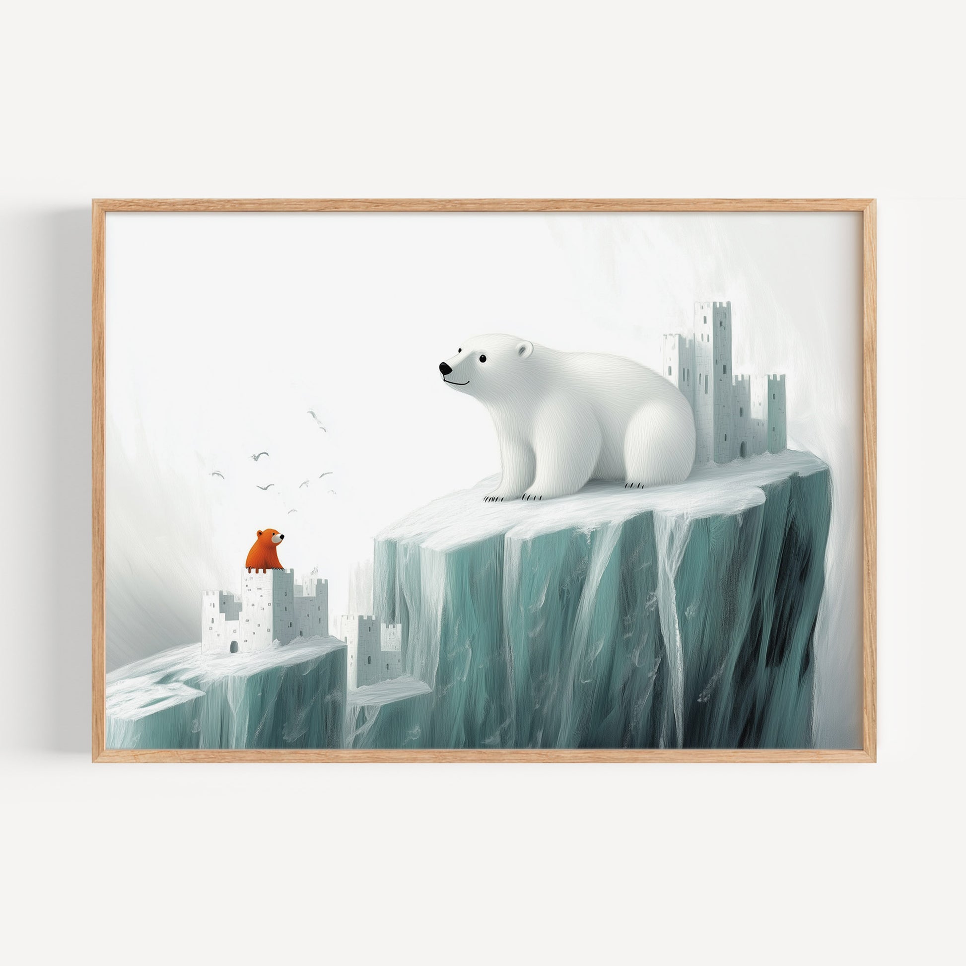 Step into the magical world of our "Snowy Kingdoms collection," where playful polar bears build magnificent snow castles in an Arctic wonderland. This delightful series of drawings captures the joy, creativity, and imagination of these frosty architects as they build their icy palaces.