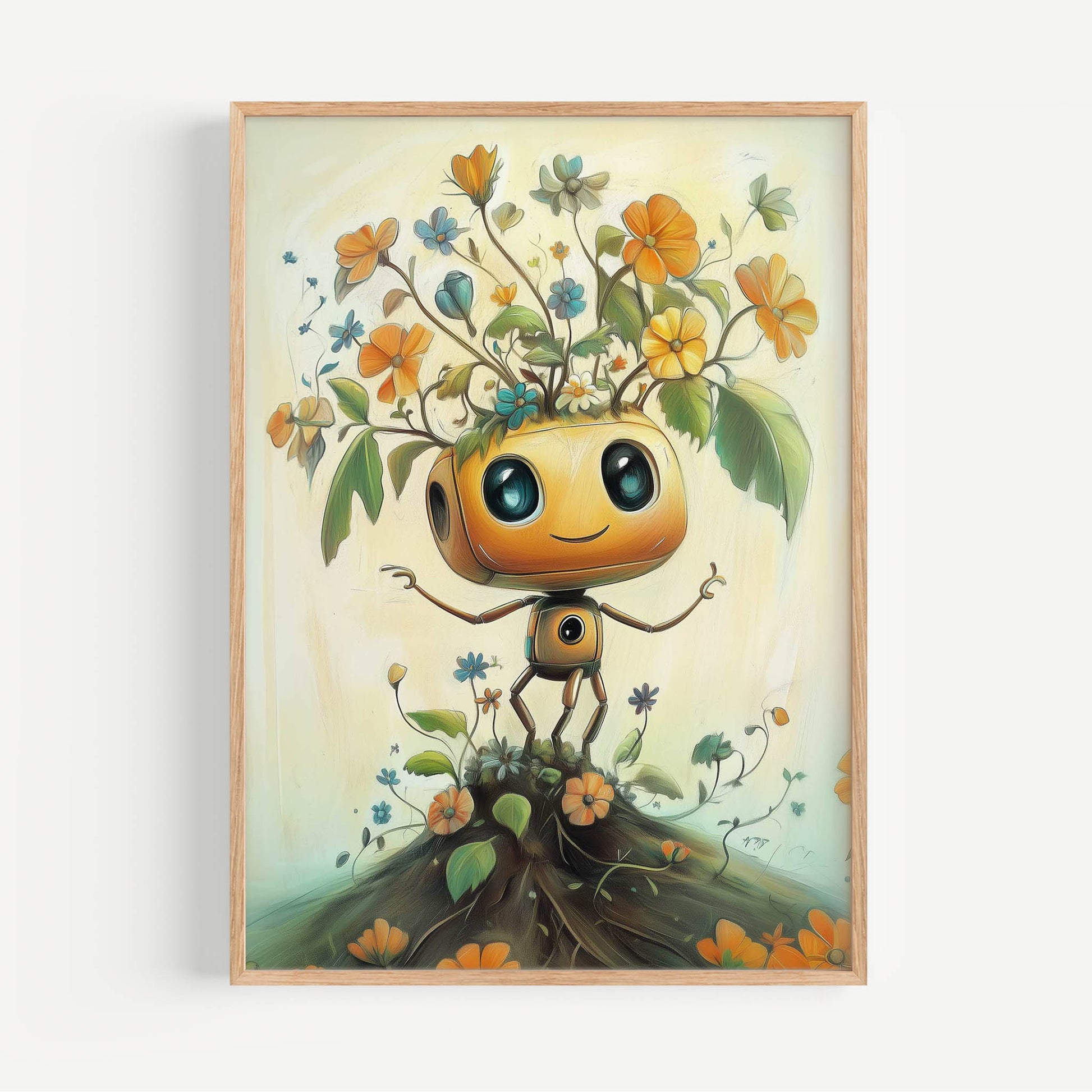 This piece from the Garden Gears Collection is more than just art—it’s a little lesson in how joy and creativity can thrive in any environment. With its happy robot and lush plant life, this print celebrates growth, adaptability, and finding beauty in the unexpected. It’s the perfect addition to a child’s space, inviting them to dream big and think beyond the obvious.